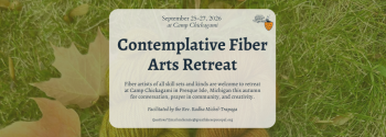 Join the Rev. Radha Michel-Trapaga for a restorative and inspiring retreat at Camp Chickagami, designed for fiber artists of all skill levels seeking a deeper connection with their craft, themselves, and the divine. This retreat offers a unique opportunity to immerse yourself in your creative process within a supportive community, while also nurturing your spiritual journey through contemplative practices.