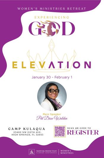 Florida Conference Women's Ministries "Embracing God in our Elevation" at Camp Kulaqua in 2026. Enjoy spectacular speakers, uplifting music, exceptional food, and wonderful fellowship at this retreat just for women